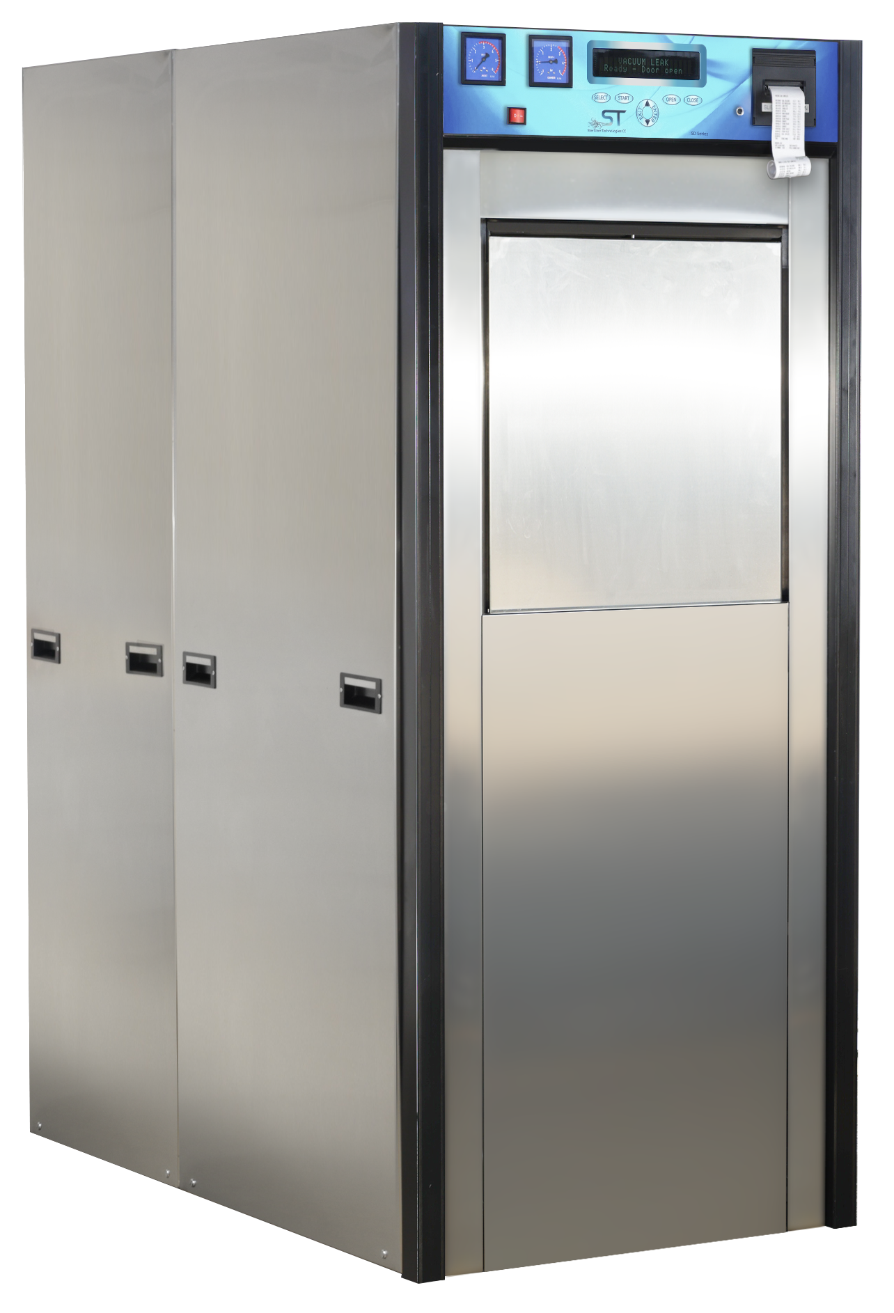 Various accessories can be supplied for handling of the loads, the chamber can be fitted with internal shelves onto which the loads can be directly placed. Internal and external trolley systems can also be supplied and baskets in a variety of sizes are available for instruments and packages.
