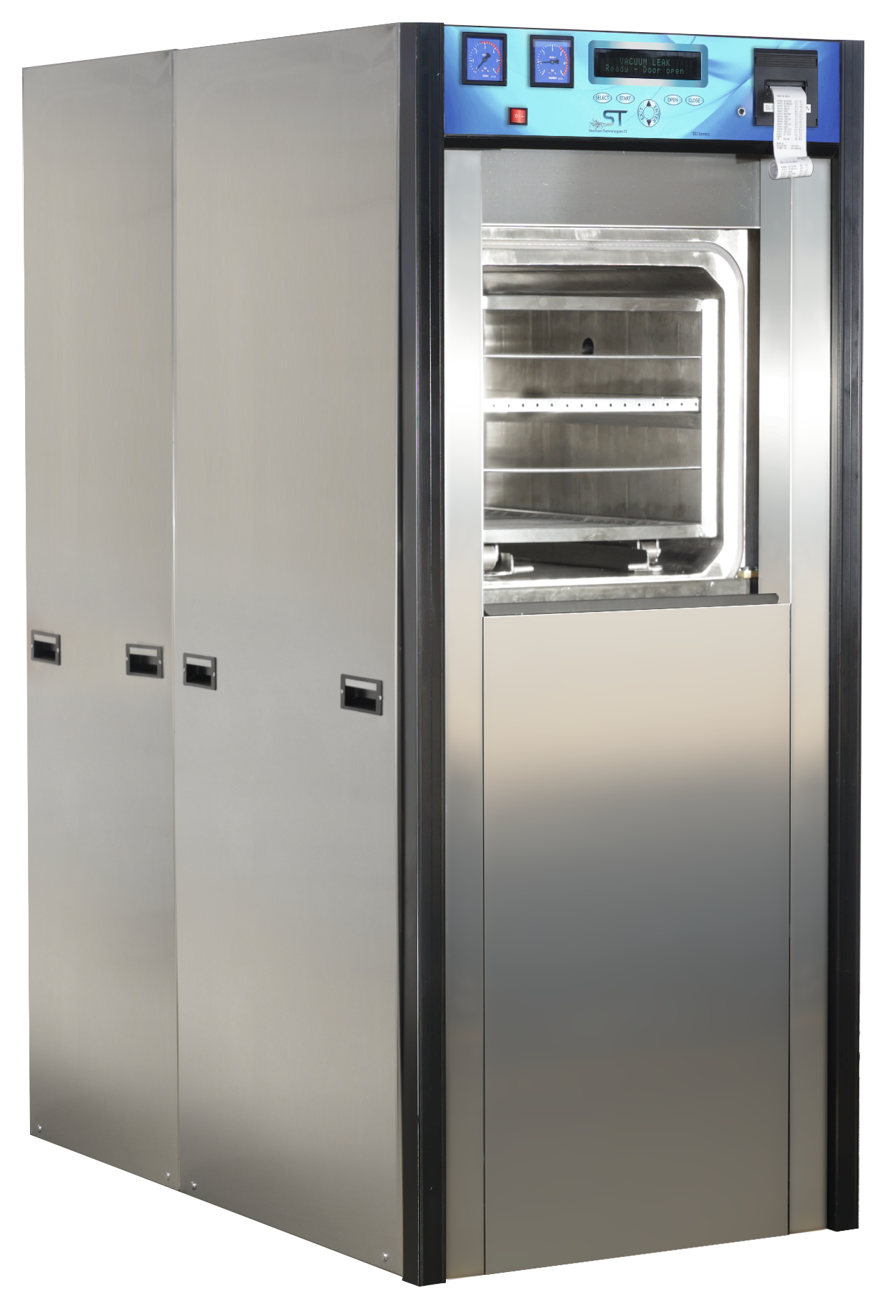 Various accessories can be supplied for handling of the loads, the chamber can be fitted with internal shelves onto which the loads can be directly placed. Internal and external trolley systems can also be supplied and baskets in a variety of sizes are available for instruments and packages.